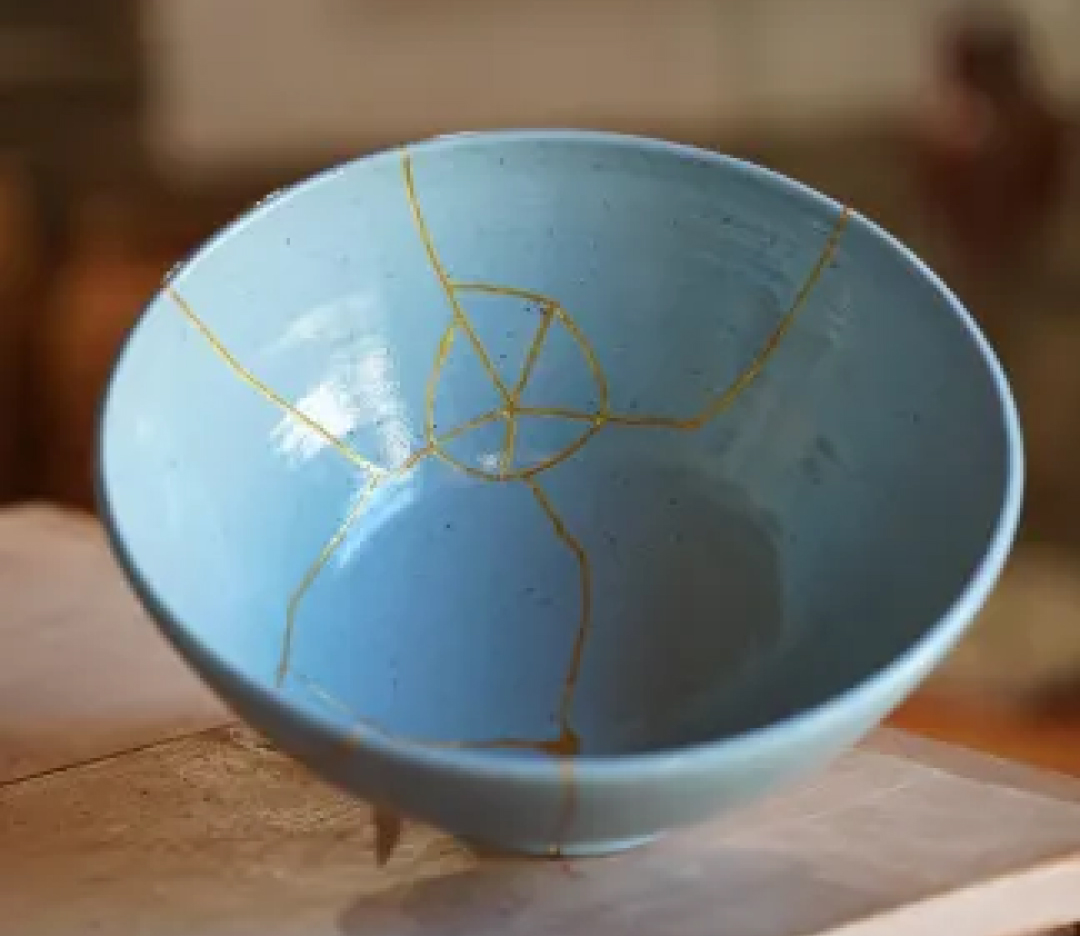 Cuenco esmaltado con reparaciones doradas